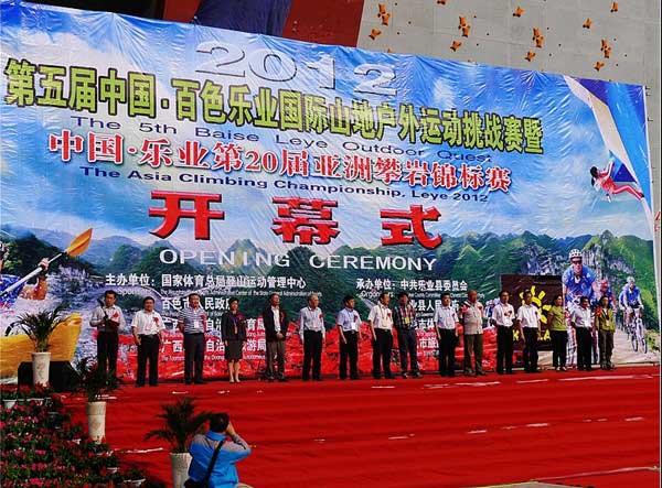 第五届中国.百色乐业国际山地户外运动挑战赛暨2012中国.乐业第20届亚洲攀岩锦标赛于4月25日—28日在广西百色乐业县举行。共有来自瑞典、英国、美国、丹麦、菲律宾、新西兰、加拿大、澳大利亚、德国、法国以及台湾、香港等国家和地区的20支世界顶尖队伍参加。