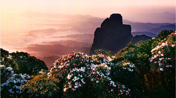 (图八)金秀县圣堂山风光——“杜鹃映圣堂” 李日真 摄影 |